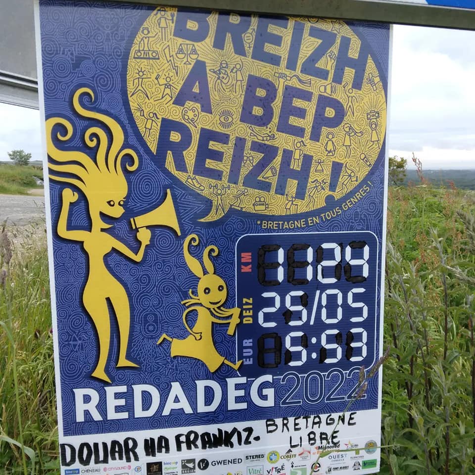 Bonne semaine sur les routes du pays à courir pour la langue bretonne. La Redadeg est en train de faire le tour de Bretagne et nous y avons participé, en centre Bretagne et dans le Tregor nous avions réservé 2km. Et nous serons samedi à Vannes pour l’arrivée.