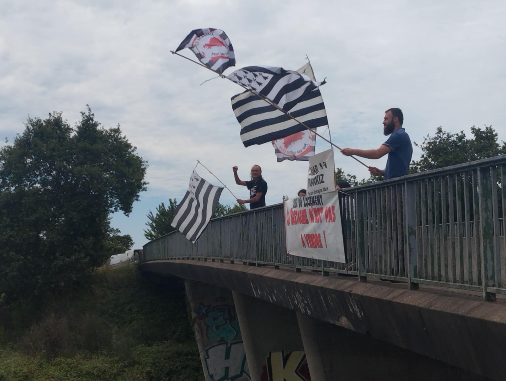 Action sur les ponts en Loire Atlantique et dans le Morbihan, à Malville, au Temple de Bretagne et à Nivillac aujourd’hui contre la crise du logement en ce début de période touristique. Un slogan: « la Bretagne n’est pas à vendre » pour dénoncer le sur-tourisme, et l’énorme quantité de résidences secondaires et de AirBNB partout dans le pays. Rappelons qu’il y a plus de 330 000 résidences secondaires et des dizaines de milliers de logements utilisés à des fins touristique en Bretagne, et ces chiffres augmentent alors que nous manquons cruellement de logement à l’année.